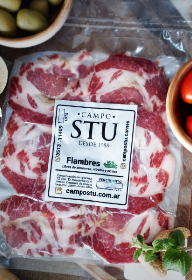 BONDIOLA FIAMBRE, REALIZADA CON BONDIOLA CARNE DE NUESTROS CERDOS DE CAMPO, SALADA Y ESTACIONADA , EL PRODUCTO SALE CON FECHA DE ELABORACION , ENVASADO VACIO. (PRODUCTO LIBRE DE HARINAS, ALMIDONES Y CONSERVANTES) Presentación en 130 gr aprox