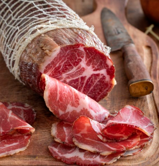 BONDIOLA FIAMBRE, REALIZADA CON BONDIOLA CARNE DE NUESTROS CERDOS DE CAMPO, SALADA Y ESTACIONADA , EL PRODUCTO SALE CON FECHA DE ELABORACION , ENVASADO VACIO. (PRODUCTO LIBRE DE HARINAS, ALMIDONES Y CONSERVANTES) piezas de 350 gr aprox